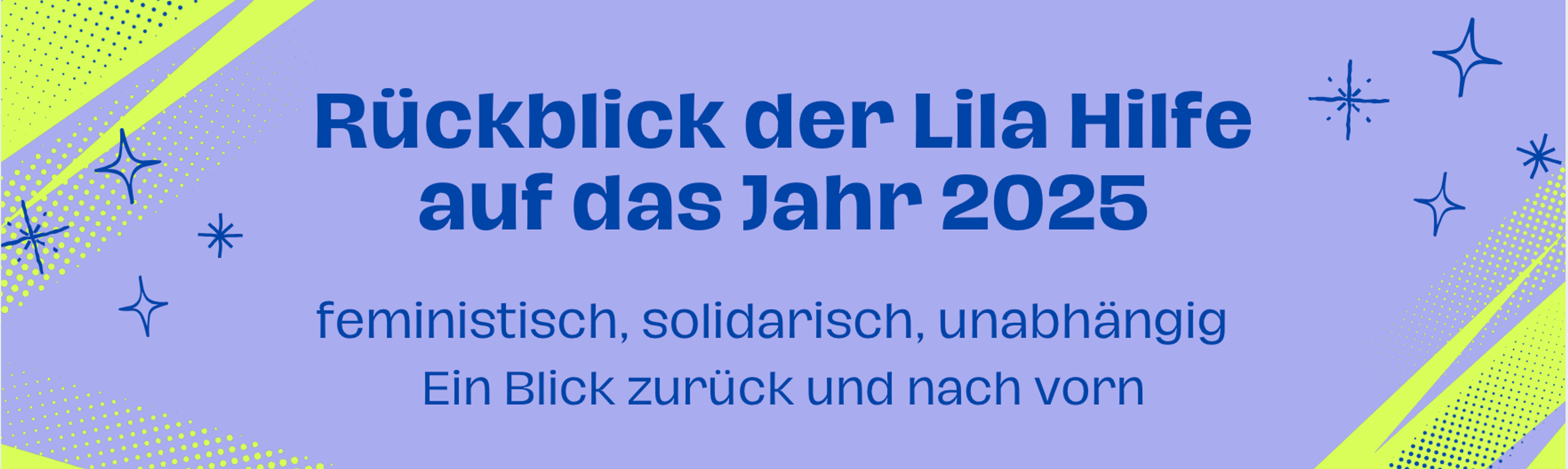 Im Verlauf des Jahres wurde zunehmend deutlicher, dass wir uns intern damit auseinandersetzen müssen, wie wir Organisierung, Aktivismus und politische Arbeit verstehen. Uns ist klar geworden, dass wir uns auch intensiv miteinander auseinandersetzen, eine solidarische Gemeinschaft schaffen wollen und die Lila Hilfe nicht nur als eine Dachorganisation für vereinzeltes, individualisiertes Ehrenamt sehen. Das bedeutet auch uns intern gegenseitig politisch weiterzubilden, immer auch mit dem Blick auf langfristige Ziele gerichtet und nicht nur auf die mechanische Abarbeitung der Unterstützungsfälle, wie es zeitweise im vergangenen Jahr, durch die enorme Zunahme an Anträgen, gelaufen ist. Wir denken, dass Feminismus und Solidarität Bereitschaft braucht, füreinander da zu sein und zeitweise auch individuelle Bedürfnisse hinter Gruppenansprüche zurückzustellen. Frei nach dem Motto “Annoyance is the price we pay for community” (Divya Venn).